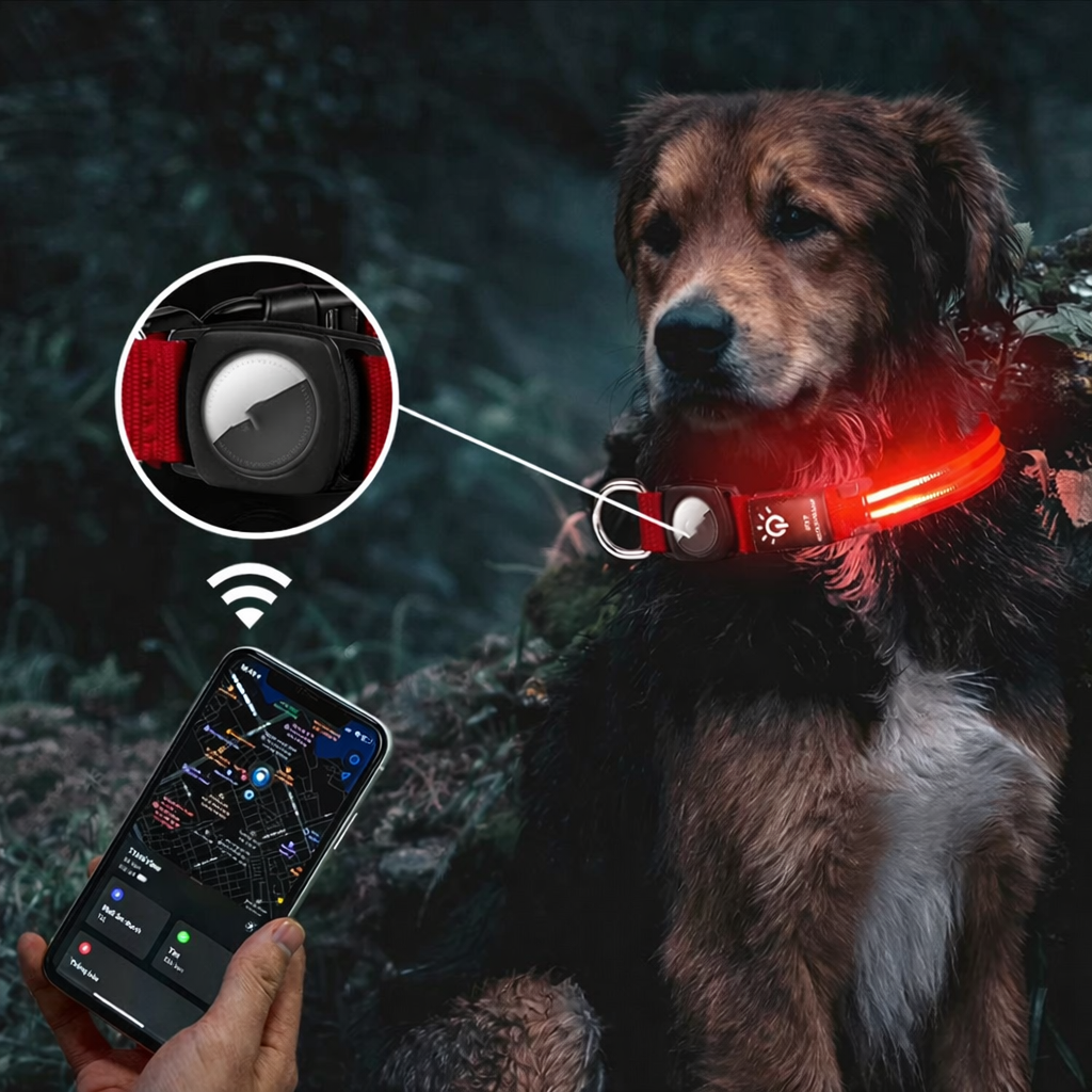 'Pawsitively!' Locate, protect, and adorn your four-legged friend with our exclusive light-up airtag collar.